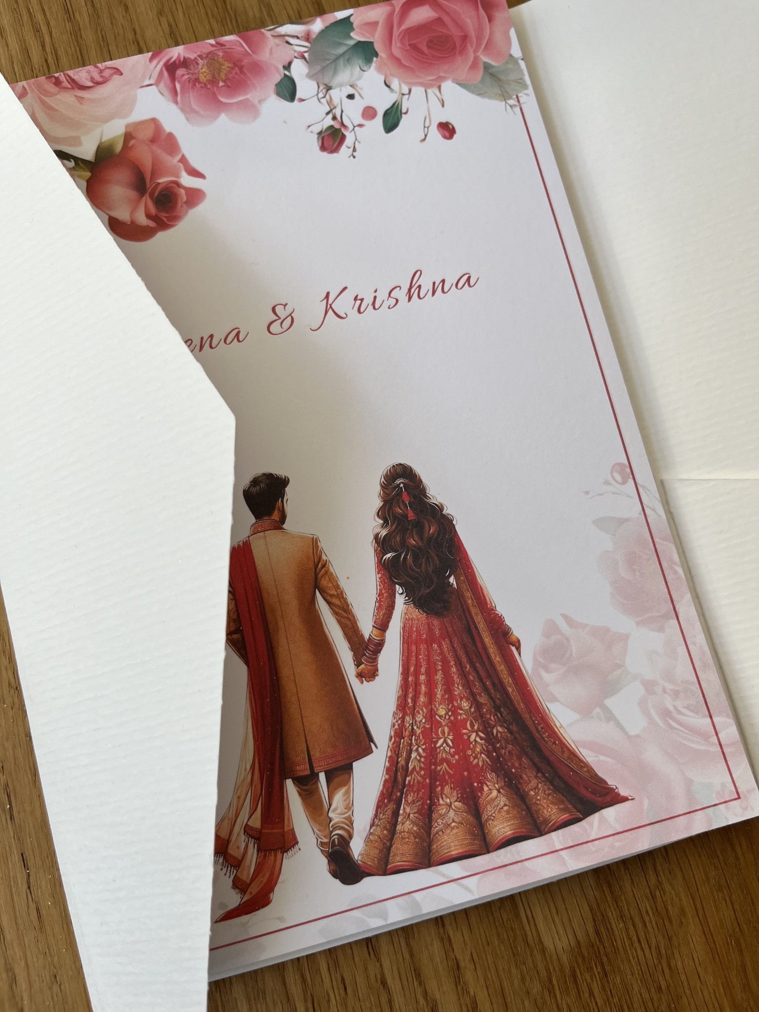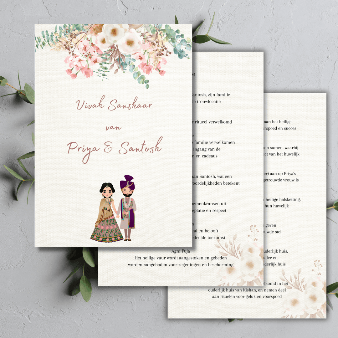 Elke kaart krijgt een uniek ontwerp, helemaal afgestemd op jullie wensen. Voor extra ontwerpen, zoals aan de achterzijde of met extra inserts, kan de prijs variëren—vandaar mijn transparante vanaf prijs.